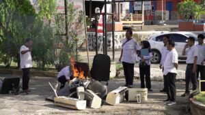 Proses pemusnahan dilakukan dengan cara pembakaran dan perusakan fisik, dan disaksikan langsung oleh perwakilan dari Badan Keuangan dan Aset Daerah (BKAD) Provinsi Sulbar, Inspektorat Daerah, serta pihak terkait lainnya, guna memastikan bahwa prosedur telah dilaksanakan sesuai regulasi yang berlaku.