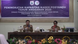 dpmd.sulbar_Mamuju – Dalam upaya memperkuat peran serta kader Posyandu dalam pelayanan kesehatan masyarakat, Dinas Pemberdayaan Masyarakat dan Desa (PMD) Provinsi Sulawesi Barat menyelenggarakan kegiatan Peningkatan Kapasitas Kader Posyandu yang berlangsung selama satu hari, tanggal 29 September 2025, bertempat di Hotel Grend Putra, Mamuju.